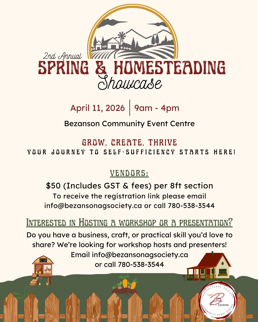Email: info@bezansonagsociety.ca for vendor registration